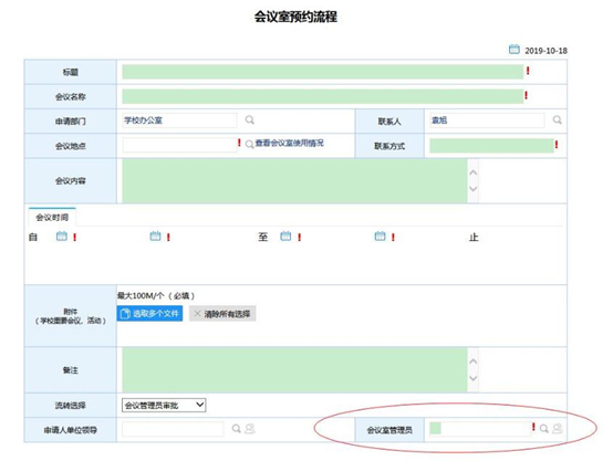 为了进一步加强学校大型会议室的管理和使用,经学校研究决定,自即日起,学校科学会堂、成栋楼四楼会议室、国际会议厅(动保楼331)的管理、维护等工作由学校后勤保障部(后勤服务总公司)具体负责,借用预约工作仍在OA系统下进行(预约流程中会议室管理员请选择梁敏姝审批,如图所示),其他情况可电话咨询,联系人:姚远平,联系电话:82191000。