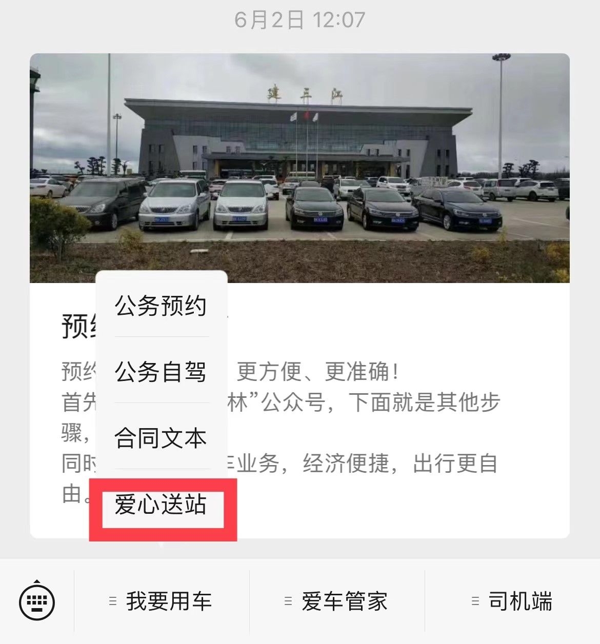 扫描二维码,点击“我要用车”—“爱心送站”,进行送站预约。