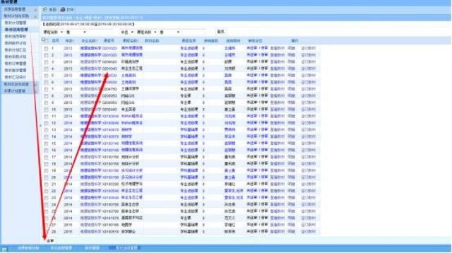 5.在开放时间内教师完成填报教材数据后,教学秘书进行汇总检查,如下图确认无误后进行送审操作。