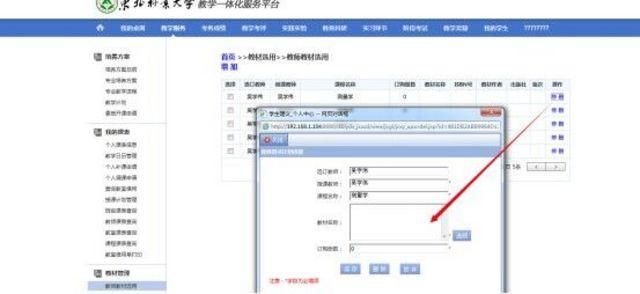 教师通过教务系统完成教材征订工作,教师直接从教务管理系统教师端录入、送审,教学秘书进行汇总检查、送审,教学院长进行审定。