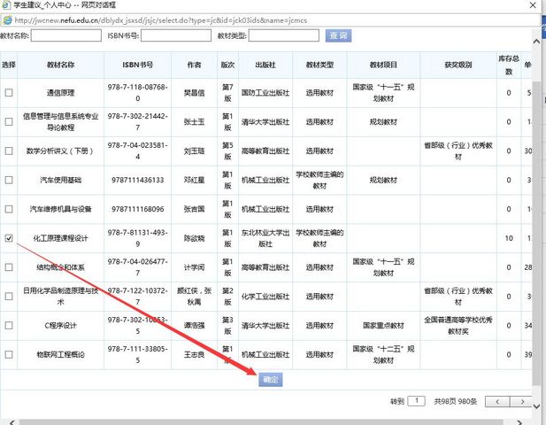 4.进入选择教材页面,选择需要的教材点击确定,填写教师用书册数,信息核对后送审。至此教师端选择教材环节结束。