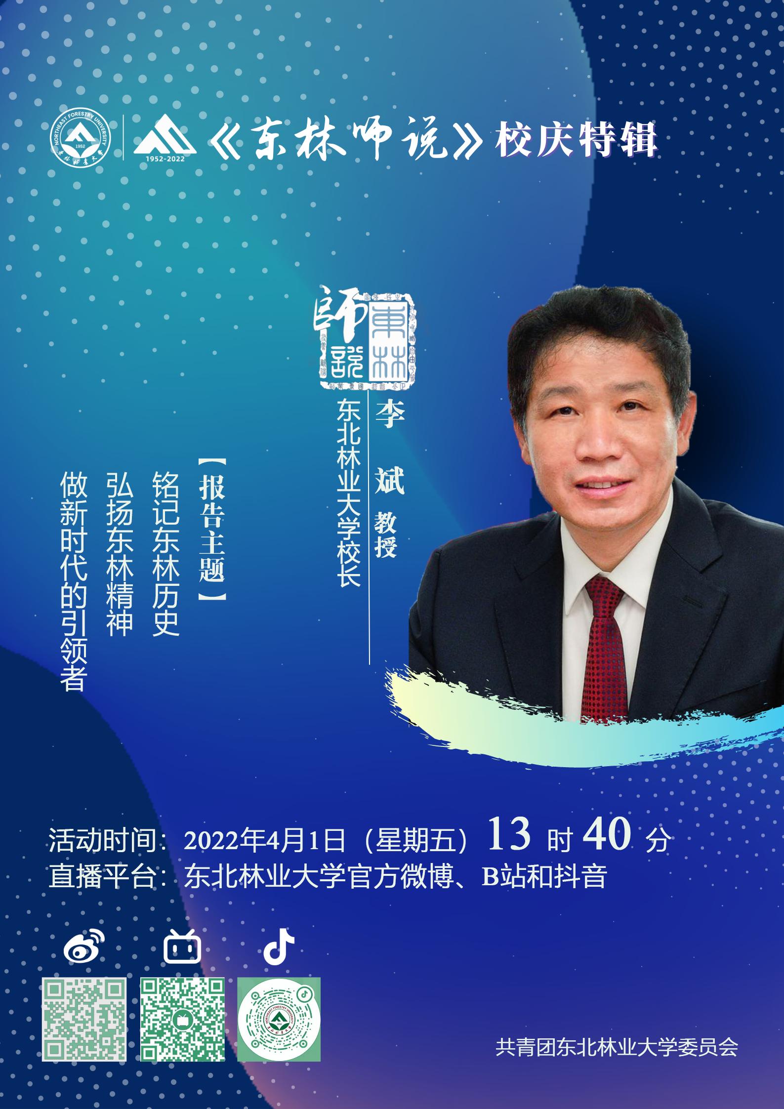 李斌校长将结合工作经历,带领广大师生校友,学习东林70年来筚路蓝缕、攻坚克难的发展脉络,重温东林人70年来团结拼搏、砥砺奋进的光辉历程,深度解读东林“以林育人”“林中育人”的办学理念,深情讲述一代代东林人为学校发展建设鞠躬尽瘁的感人事迹,深入阐释一批批东林学子为祖国林业事业终身奋斗的精神内涵。