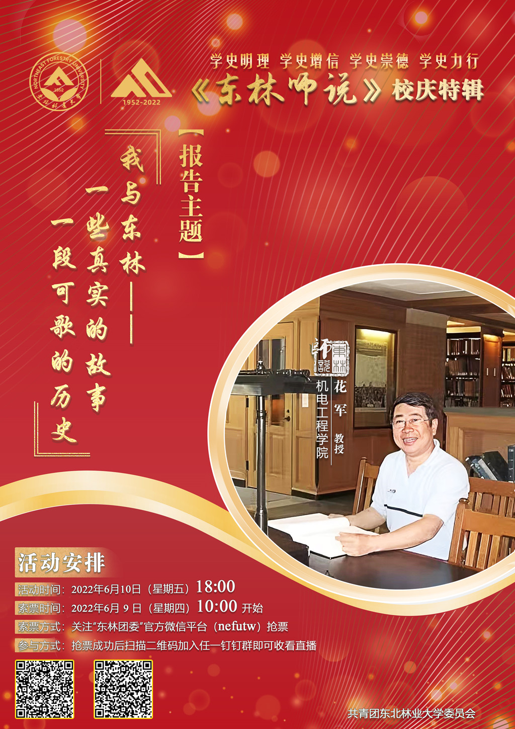 花军教授将结合对东林精神谱系的理解,详细介绍机电工程学院六十余年的发展历史及光辉历程,引领青年学生时刻铭记东林历史,以此为激励为东林、为机电学院的发展作出贡献!