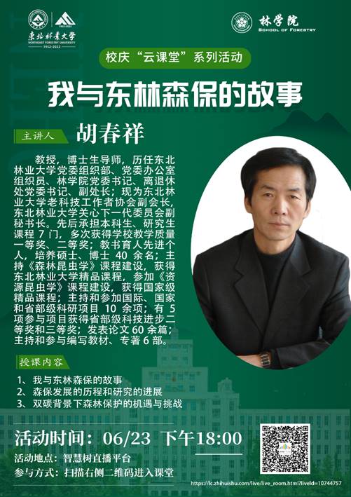 为喜迎我校建校70周年华诞,传承东林使命,赓续林学精神,林学院特开展喜迎建校70周年校庆“云课堂”系列活动。旨在为校友们搭起与母校联络感情的桥梁,重温曾经在校的温暖时光,追忆当年的青春岁月,师生共同述往思来、共谱芳华。同时,启迪在校师生以昂扬向上的精神风貌迎接70年校庆,继往开来,再谱新篇。