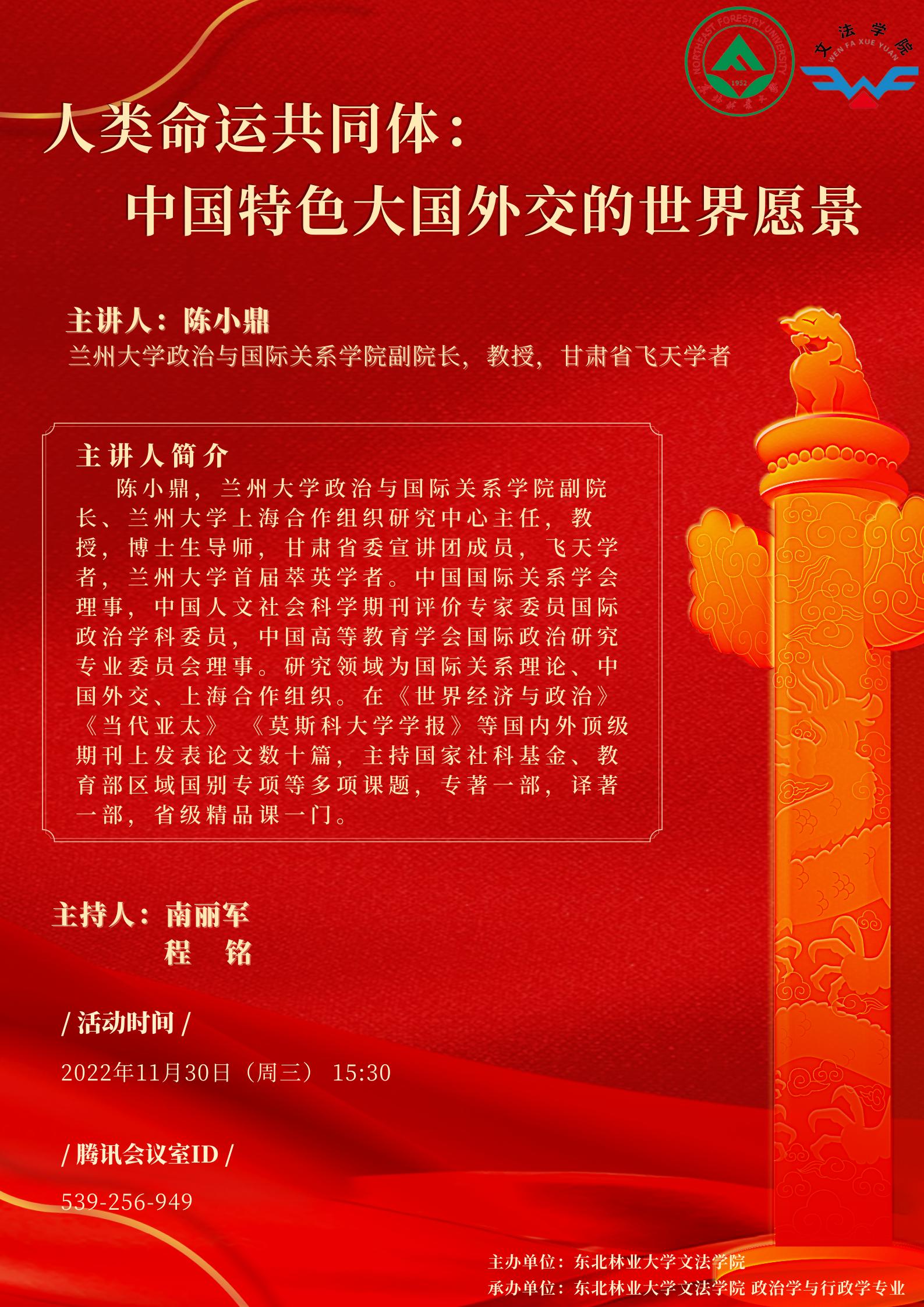 主讲人:陈小鼎,兰州大学政治与国际关系学院副院长、兰州大学上海合作组织研究中心主任,教授,博士生导师,甘肃省委宣讲团成员,飞天学者,兰州大学首届萃英学者。中国国际关系学会理事,中国人文社会科学期刊评价专家委员国际政治学科委员,中国高等教育学会国际政治研究专业委员会理事。研究领域为国际关系理论、中国外交、上海合作组织。在《世界经济与政治》《当代亚太》《莫斯科大学学报》等国内外顶级期刊上发表论文数十篇,主持国家社科基金、教育部区域国别专项等多项课题,专著一部,译著一部,省级精品课一门。