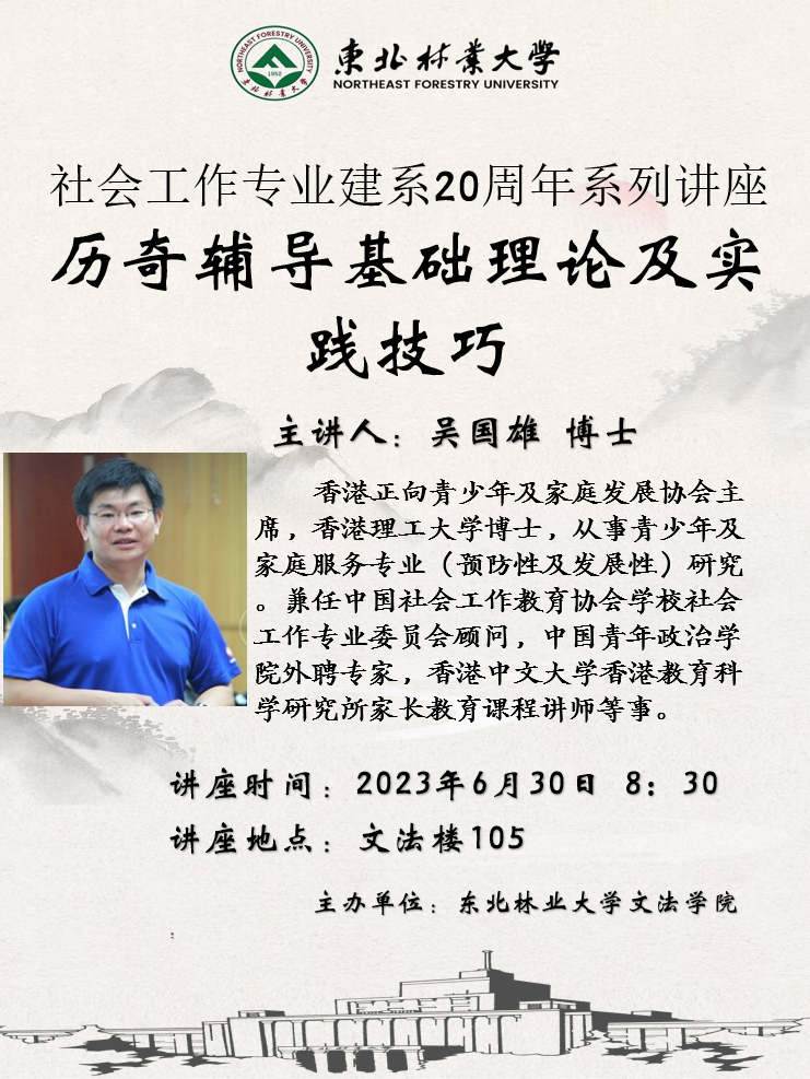 吴国雄,香港正向青少年及家庭发展协会主席,香港理工大学博士,从事青少年及家庭服务专业(预防性及发展性)研究。兼任中国社会工作教育协会学校社会工作专业委员会顾问,中国青年政治学院外聘专家,香港中文大学香港教育科学研究所香港政府教育局辅导课程及家长教育课程讲师等。