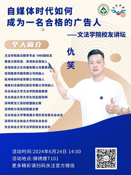 仇笑校友将结合自身工作经历,深情讲述自媒体时代应如何成为一名合格的广告人。