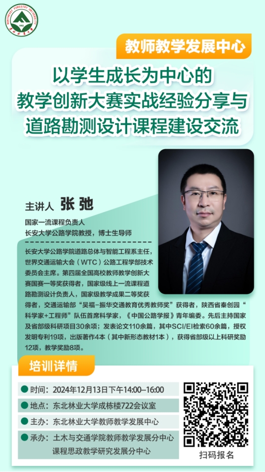 报告题目:以学生成长为中心的教学创新大赛实战经验分享与道路勘测设计课程建设交流