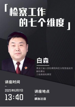 主讲人简介:白森,黑龙江省人民检察院林区分院党组成员、副检察长、三级高级检察官。