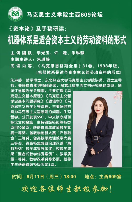 报告题目:《资本论》及手稿研读:机器体系是适合资本主义的劳动资料的形式