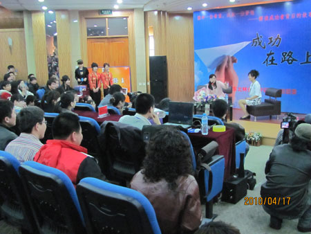 4月17日上午10点,中国主持人最高奖项——“金话筒”奖获得者、黑龙江人民广播电台的首席主持人、《新大学时代》及《叶文有话要说》等节目的编辑与主持叶文走进由研究生部团委主办的《成功在路上》。
