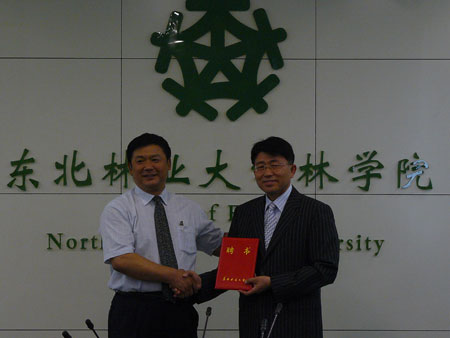 林学院沈海龙副院长向Dr. Songmun Kim颁发完美网页版,完美(中国)官方在线登录客座教授聘书