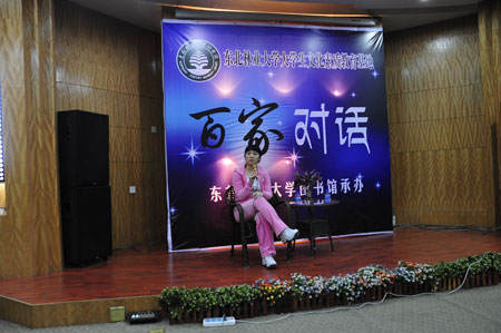 4月16日上午9点30分,中国主持人最高奖项——“金话筒”奖获得者、《叶文有话要说》等节目的编辑与主持叶文女士做客图书馆“百家对话”。图书馆学术报告厅中气氛热烈、座无虚席。