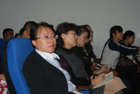 李德凤教授的讲座题目为“Connecting Theory with Practice: Reflective Journal in Learning and Teaching Translation”(理论联系实际:翻译教、学中反思日记的运用)。李德凤教授以“翻译理论研习的必要性;翻译理论运用的适时性与适度性;翻译理论学习的最佳途径”三个问题为主导,针对性地解答了学习者中普遍存在着的认为翻译理论较为抽象,与翻译实践相距甚远的疑虑;系统地介绍了Holmes对译学理论体系的划分;重点地阐释了Reiss的功能翻译理论以及其后成为功能翻译理论核心的Hans Vermeer的目的论。然后,李德凤教授通过实证详细地论述了反思日记在翻译理论和翻译实践相结合的过程中所起的重要作用,提出了学习者对翻译理论的内化过程是翻译教学中的重要环节的主张。李德凤教授特别指出:反思日记的运用为翻译课程的教授者与学习者之间开辟了一条有效的交流途径,为学习者提供了有效的理论运用参数,是一种值得推广的教学方法。最后,李德凤教授详细地回答了现场师生的提问。李德凤教授的讲座充分体现了一个著名学者的学术造诣和职业素养。李德凤教授的学术讲座获得了与会者的一致好评与衷心赞叹。