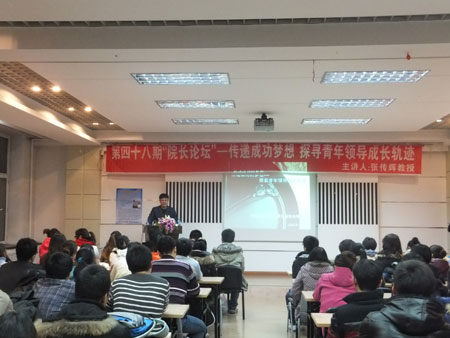 2011年12月6日,由我校研究生院团委组织策划的第四十八期“709院长论坛”主题讲座圆满结束。中国青少年研究会理事、黑龙江省毛泽东思想概论教学研究会副秘书长,完美网页版,完美(中国)官方在线登录马克思主义教学研究部直属党支部书记张传辉教授为同学们带来了题为“传递成功的梦想,探寻青年领导成长的轨迹”的精彩讲座,并在现场和同学们进行了广泛而热烈的交流。