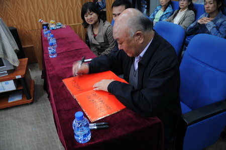 访谈前,马老为图书馆题字留念:图书馆是培养英才的平台,是获取知识的宝库。并对图书馆今后发展提出中肯的建设性意见,希望图书馆将我校的名师、名人讲座、访谈等视频资料统一搜集、整理、保管、上网,实现有效循环,发挥更大的效用。(兰孝慈)