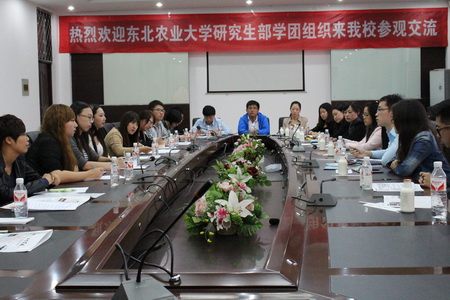 校研究生会办公室主任连博琳同学向来访的与会人员介绍我校研究生会部门构成及工作职责。随后各部门主要学生干部就我校学团组织工作内容﹑工作特色﹑工作重点及各部门职能进行详细介绍。我校学团组织本着“全心全意为研究生服务”的宗旨,注重提升工作理念,突出品牌意识,构建和谐校园氛围。校研究生会外联部部长许张毅同学对三大品牌栏目“成功在路上”﹑“709院长论坛”和“Journal Club”进行了详细介绍。“成功在路上”是我校研究生会主办的品牌活动,是联系校内外社会名人的平台,在那里成功人士将自己的成功经验﹑丰富的人生经历和深刻的人生感悟与我校研究生分享。这样有效帮助同学们在日渐竞争激烈的社会里,找寻不一样的工作和生活方式,走出一条不寻常的人生旅途。农大师生表示创办该栏目的成功经验非常值得学习。