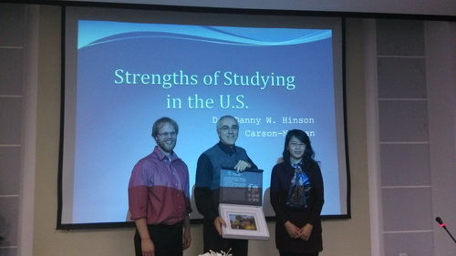 2月28日18时,外国语学院在文博楼1019室举办以“Strategies For Independent Learning”为主题的英语讲座,主讲人是来自美国卡森纽曼学院的Danny Hinson教授。卡森纽曼学院位于美国田纳西州,1997年学院被美国《货币》杂志评为百所优质大学之一。1993年成为入选国家教育学习计划的17所大学之一,拥有160年的历史。Danny教授的学生,外国语学院外籍教师Micah老师担任了此次讲座的主持人,