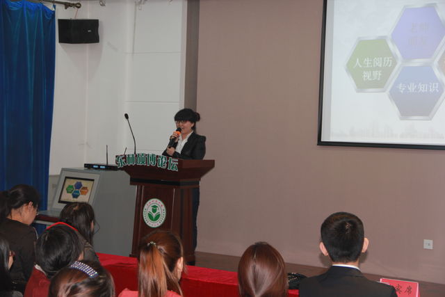 本期论坛分为主题分享汇报和学术经验交流两个环节,两位嘉宾分别作了出精彩的报告。首先,王婧杰同学以“点滴积累方有为”为题,阐述了学习方法与知识积累的重要性,她强调在研究生阶段的学习过程中,应注重“时时寻求效率进步,事事讲究技术方法,切记不要盲目学习”。在论文发表方面,她用自己“一波三折”的投稿经历,生动、直观地为同学们介绍了论文选题、选刊、写作以及“稿件退修”等方面宝贵的经验。同时,王婧杰为同学们列举了一些英语学习的心得,并在现场传授自己记忆英语单词的方法和答题技巧等,为正在备考英语四六级的同学们提供了很好的帮助。王婧杰以“点滴积累方有为,成功需要自己把握”总结了她在林大的学习生活、成长经历并与在场同学共勉。