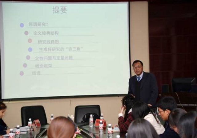 2014年4月18日上午9点,上海外国语大学博士生导师郑新民教授在文博楼1210室为我院师生作了题为“外语教育研究的具体路径和选题方法”的精彩报告。报告会由孙爽副院长主持,王丹院长、董辉副院长及部分老师、硕士研究生参加了此次报告会。王丹院长代表学院对郑新民教授的莅临表示了热烈的欢迎和感谢。