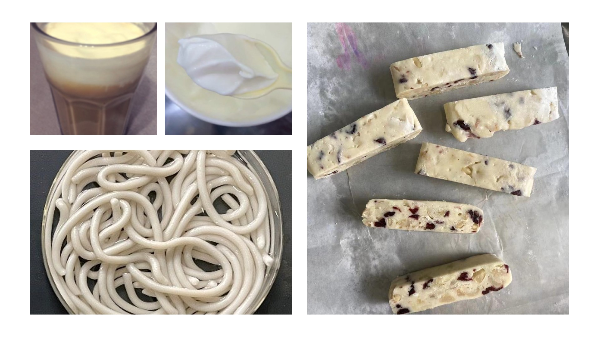 1.蛋白系列产品:以提取油脂后的松仁粕和榛仁粕为原料,开发的松仁(榛仁)蛋白活性肽产品、松仁(榛仁)蛋白-乳清蛋白复合蛋白产品(可制作饮料、冰激凌、沙拉酱等)、榛仁凝固型酸奶、榛仁冰激凌、蛋白质补充剂等。产品风味独特、性状稳定;
